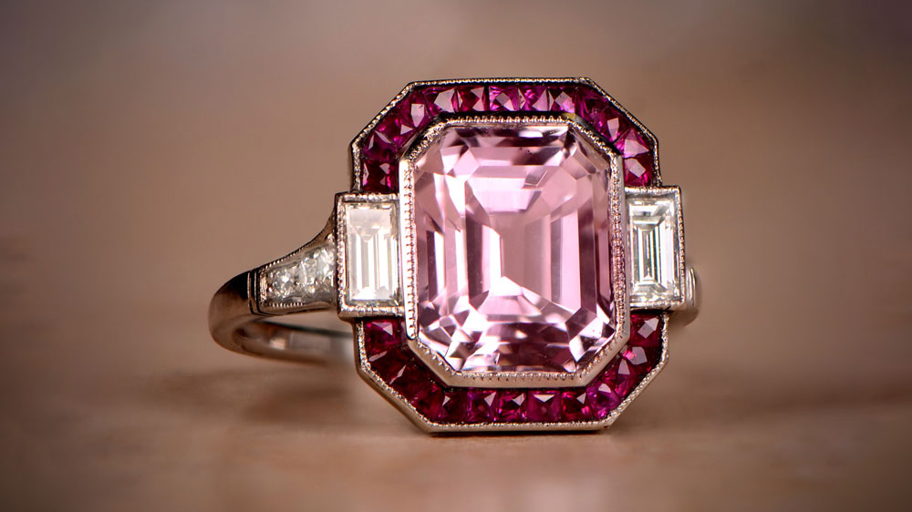 Belfort Ring . Kunzite and Ruby Halo Ring
