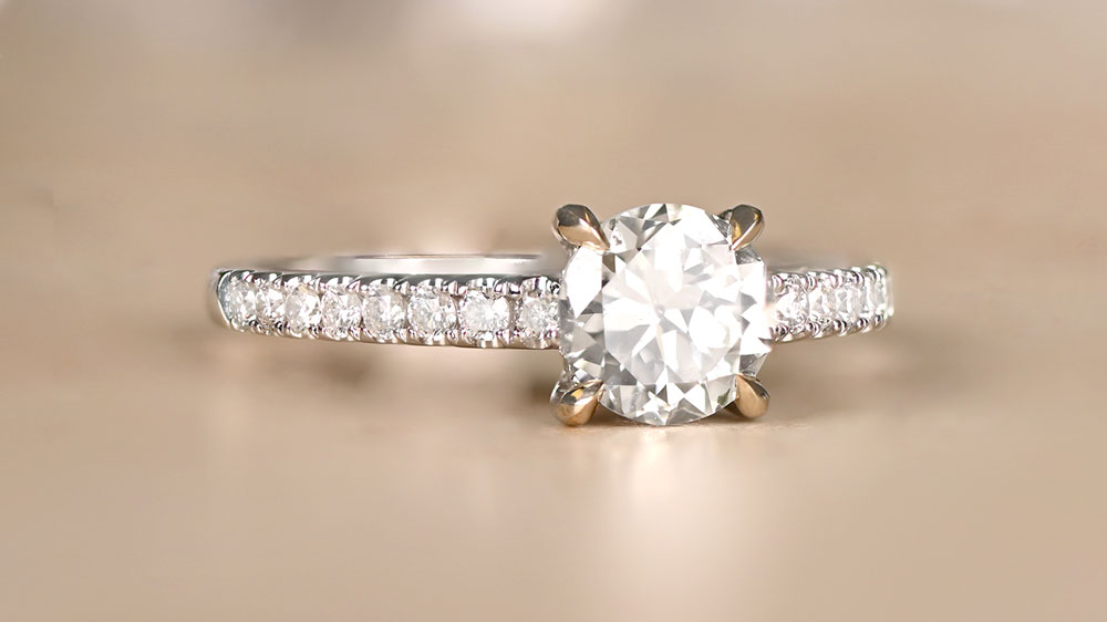 0.90 carat old European cut diamond prong set platinum engagement ring