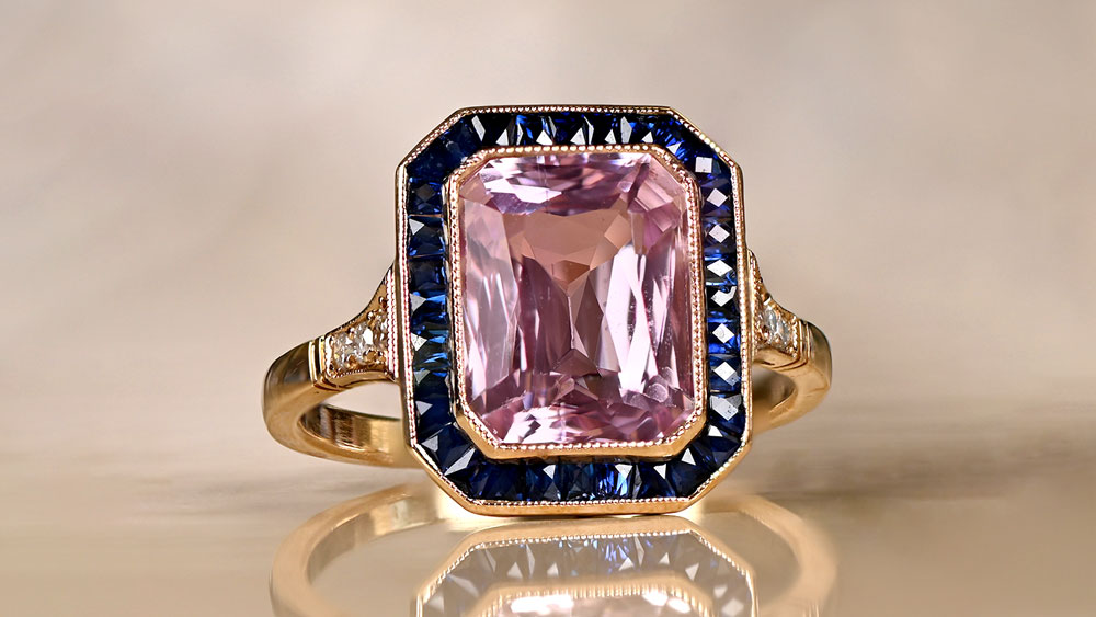 Marvão Ring . 4.06-carat kunzite ring, surrounded by a sapphire halo