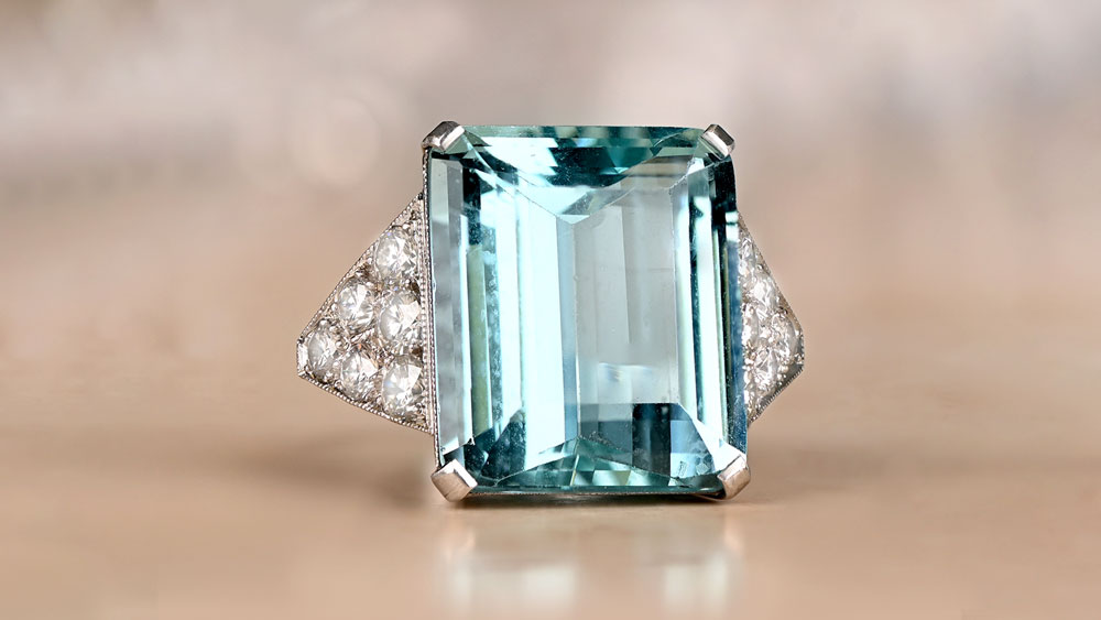 28 carat emerald cut natural aquamarine gemstone cocktail ring