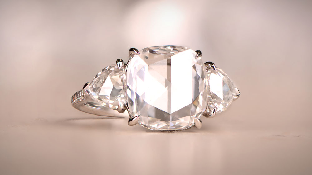 Bergon Ring . 3.11 carats cushion-shaped antique rose-cut diamond weighing.