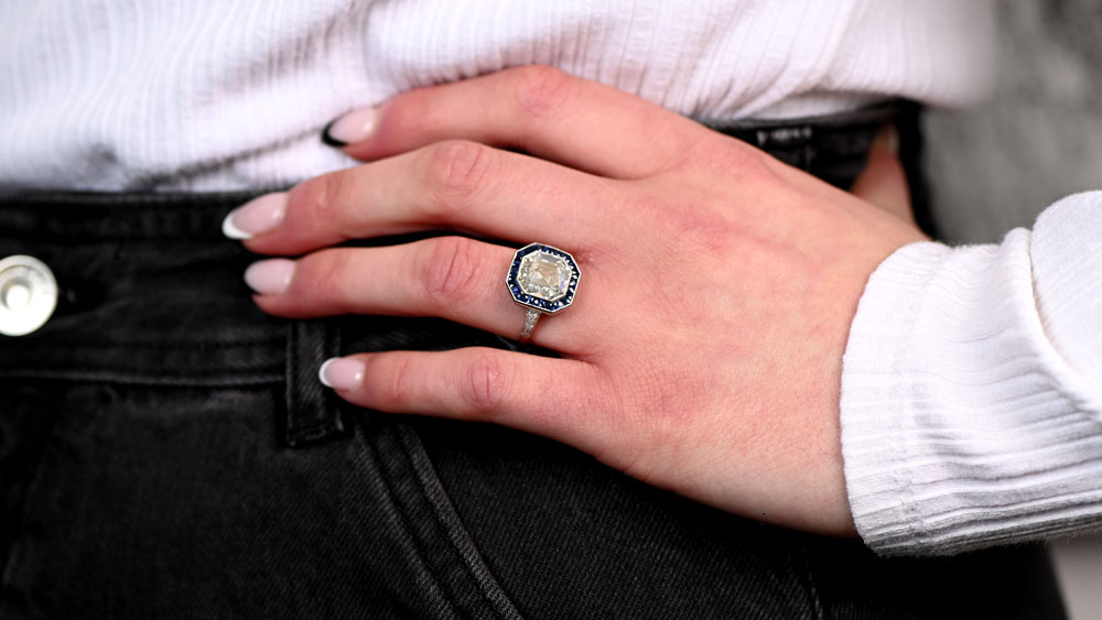Crawford Ring . 5.03 carat antique Asscher cut diamond ring
