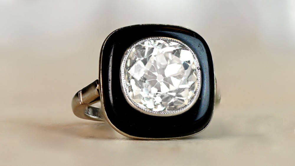 If you want something unique without being pretentious or over-the-top, then the 18k white gold Kent ring is a great option. Set in buffed onyx, the 4.30-carat cushion-cut diamond on this antique ring really is exquisite. Last but not least, the under-gallery features bold openwork.